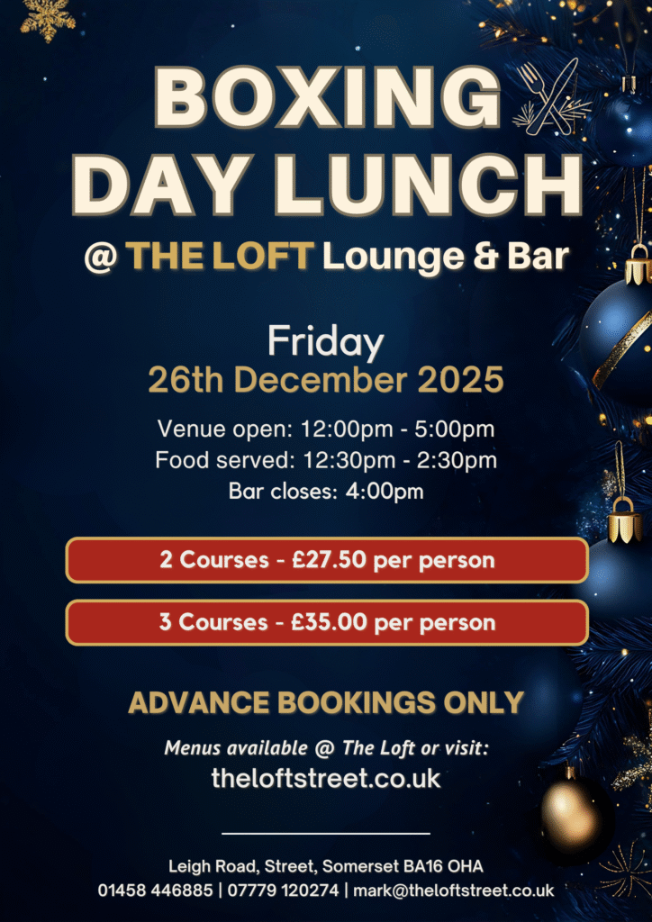 If you would like to come and view our stunning facilities for an event you are planning, please do get in touch. The Loft provides a very versatile venue in the heart of Street, Somerset.