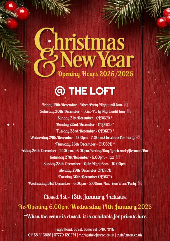 Similarly, there is no better place to see in the New Year other than at the famous Loft’s New Year’s Eve Party in Street.